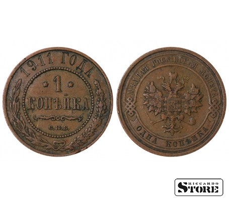 1911 Nicholas II Russian Empire Coin Copper Coinage Rare 1 kopek Y# 9 #RI4380