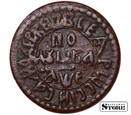 Copper 1 Polushka (¼ Kopeck) of the Russian Empire dated 1705, a regular circulation issue of Peter I’s early-18th-century monetary reform. Obverse: double-headed eagle with crowns and regalia; reverse: the ruler’s title “ВСЕЯ РОССИИ САМОДЕРЖЕЦЪ” and the Slavonic date “҂АΨЕ” (1705). Struck in copper with a plain edge; flans are often irregular, typical for the period. Type specs: about 2.13 g weight and usually 16–18 mm diameter (with natural variation).