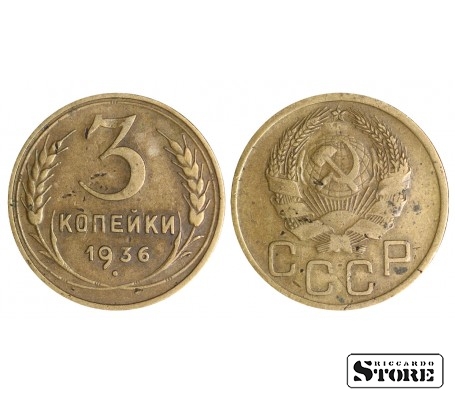 1936 USSR Coin Brass Coinage Rare 3 kopek Y# 128a #SU1433