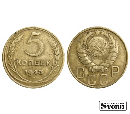1943 Soviet Union USSR Coin Aluminum Bronze Coinage Rare 5 Kopeks Y#108 #SU996