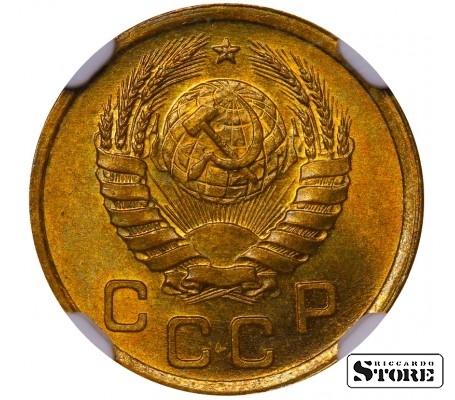 SSRS, 1 kapeika, 1938 m., aliuminio-bronzos lydinys, NGC MS 65