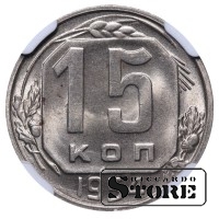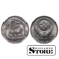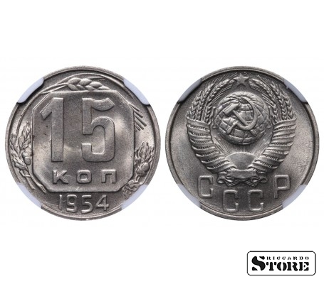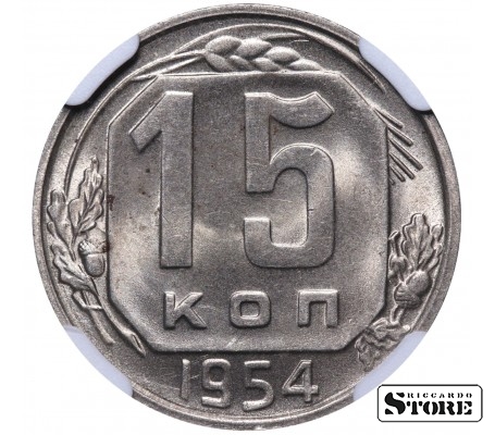 Sovietų Sąjunga, 15 kapeikų, 1954 m., vario-nikelio moneta, NGC MS 64