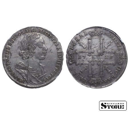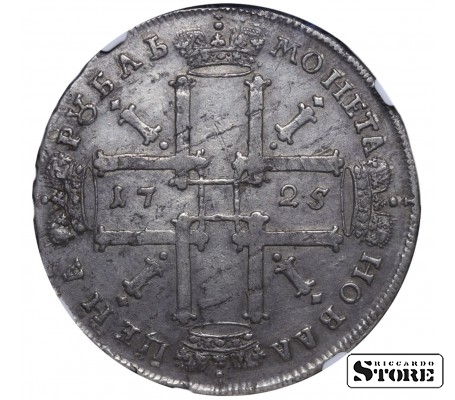Rusijos Imperijos moneta, kurios nominalas 1 rublis, išleista 1725 m. imperatoriaus Petro I Didžiojo (1721–1725) valdymo laikais. Medžiaga — sidabras, svoris 28,44 g. Įvertinta NGC — XF DETAILS.
