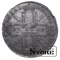 Rusijos Imperijos moneta, kurios nominalas 1 rublis, išleista 1725 m. imperatoriaus Petro I Didžiojo (1721–1725) valdymo laikais. Medžiaga — sidabras, svoris 28,44 g. Įvertinta NGC — XF DETAILS.