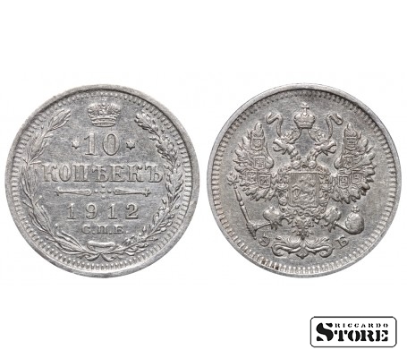 1912 Emperor Nicholas II Russia Coin Silver Coin Rare 10 kopeks Y# 20a #RI1741