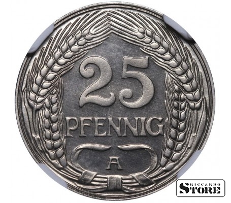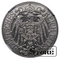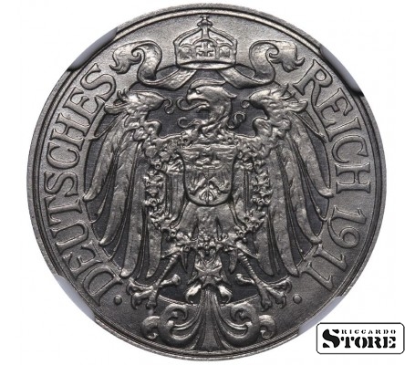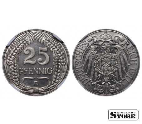 Vokietija, 25 pfengingų, 1911 m., A, nikelis, NGC PF 67