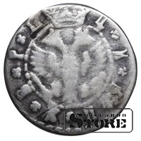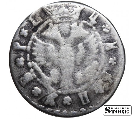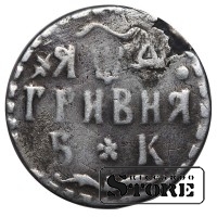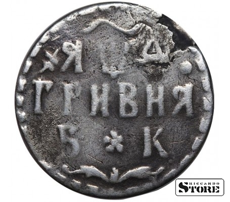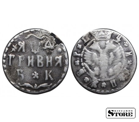 Монета Российской Империи номиналом 1 гривна, выпущенная в 1704 году в период правления царя Петра I (1682–1721). Материал — серебро, вес 2,8 г.