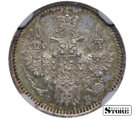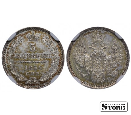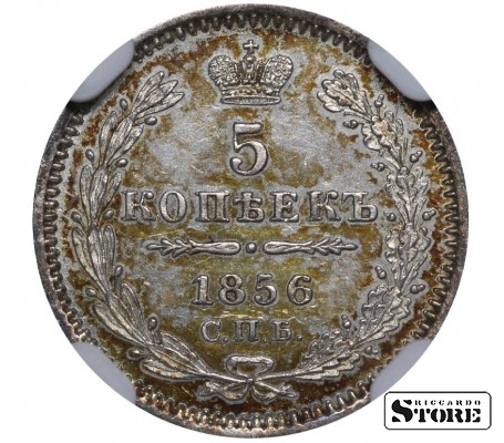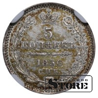 Российская Империя, 5 копеек, 1856 год, SPB-FB, NGC MS 62, Александр II