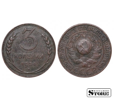 Монета 3 копейки Медь сплав 1924 года СССР регулярного чекана Y# 78 #SU2266
