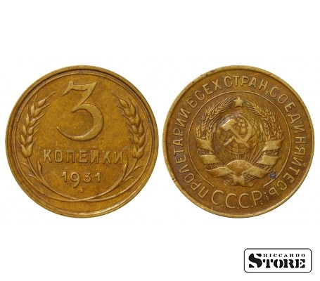 Монета 3 копейки Алюминий-бронза 1931 года СССР регулярного чекана Y# 93 #SU2288